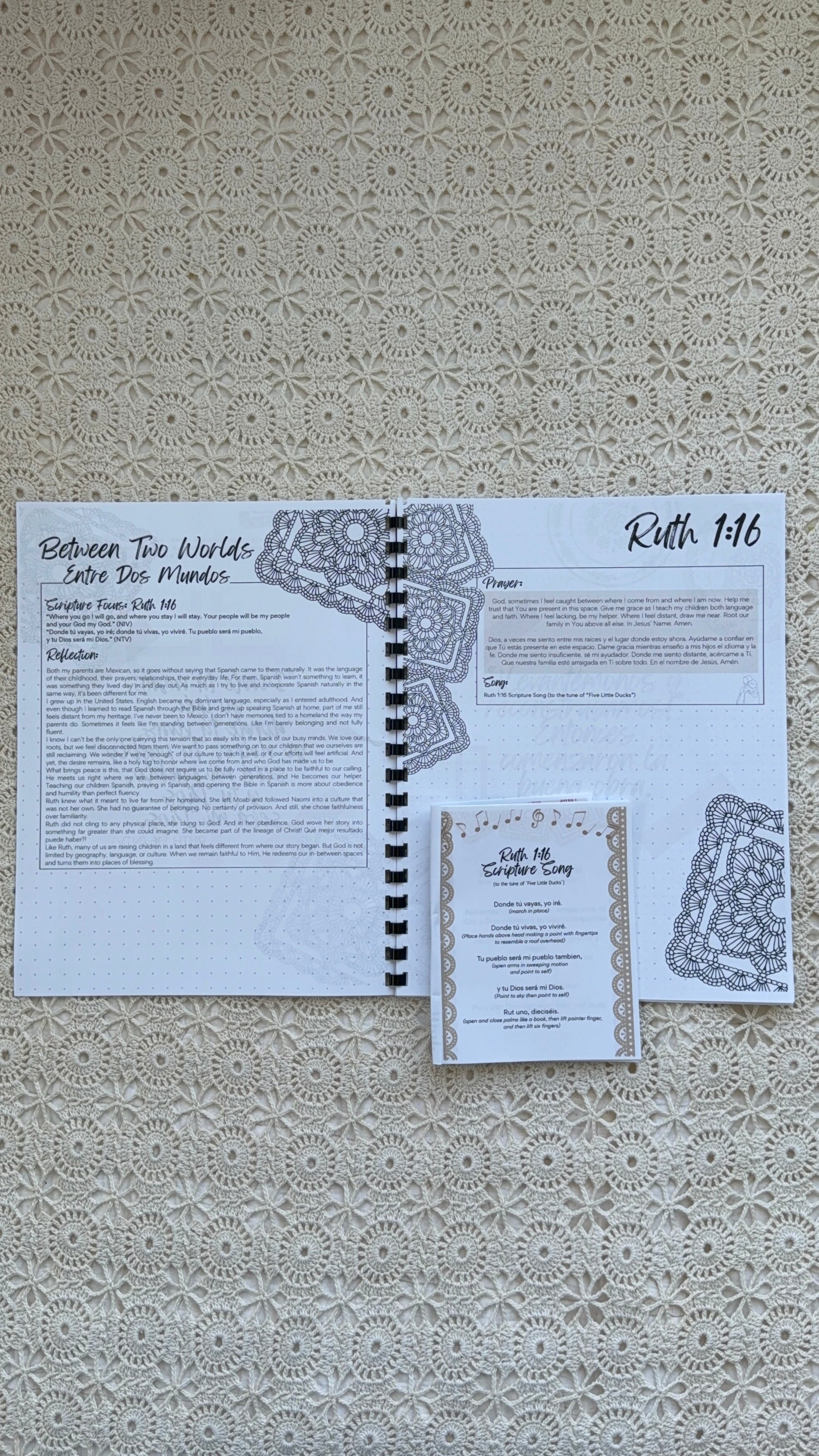 - Coloring-book style 7-day devotional journal for the bilingual mom.